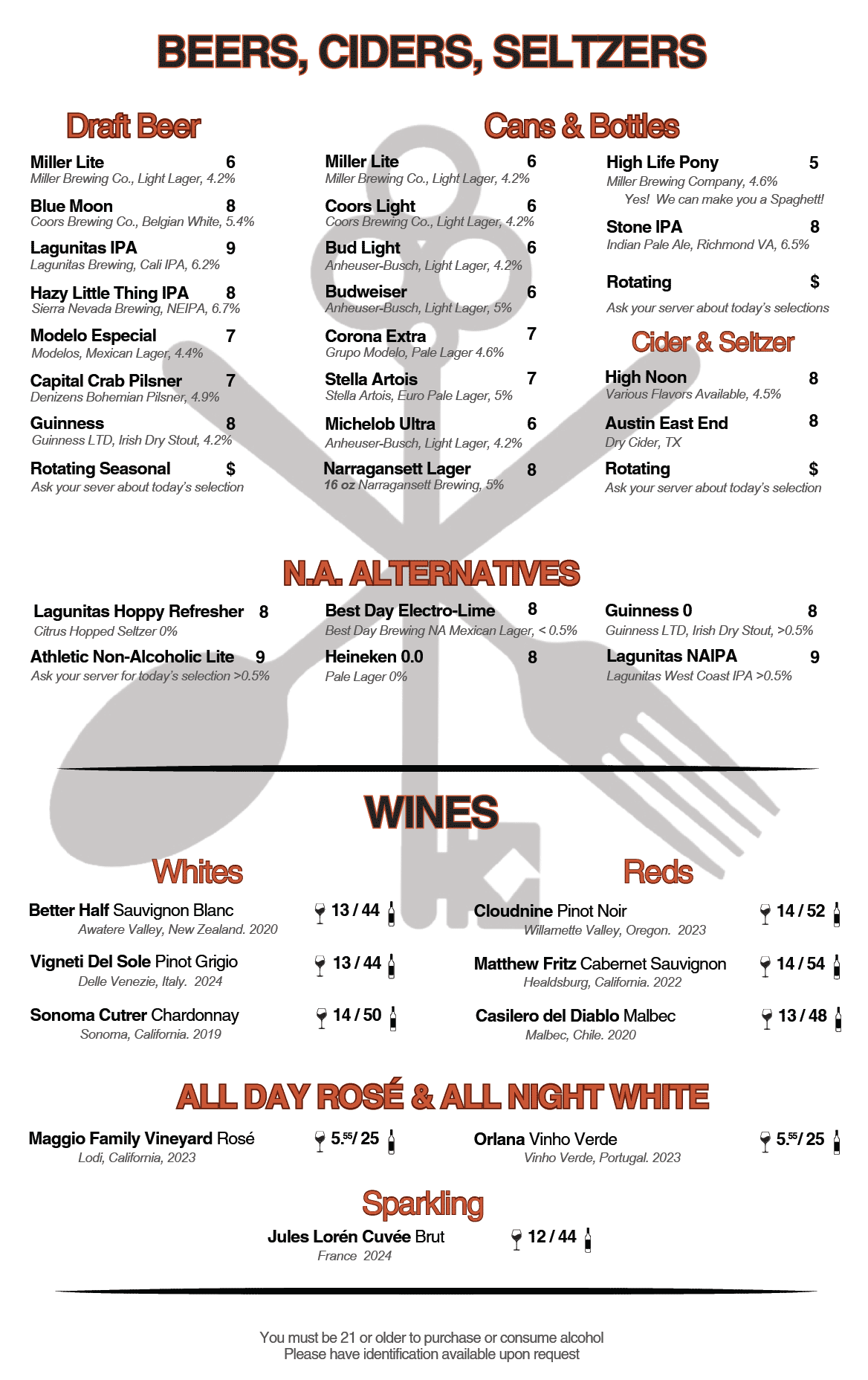 Open at 4:00 Mon thru Thurs & 12:00 Fri thru Sun