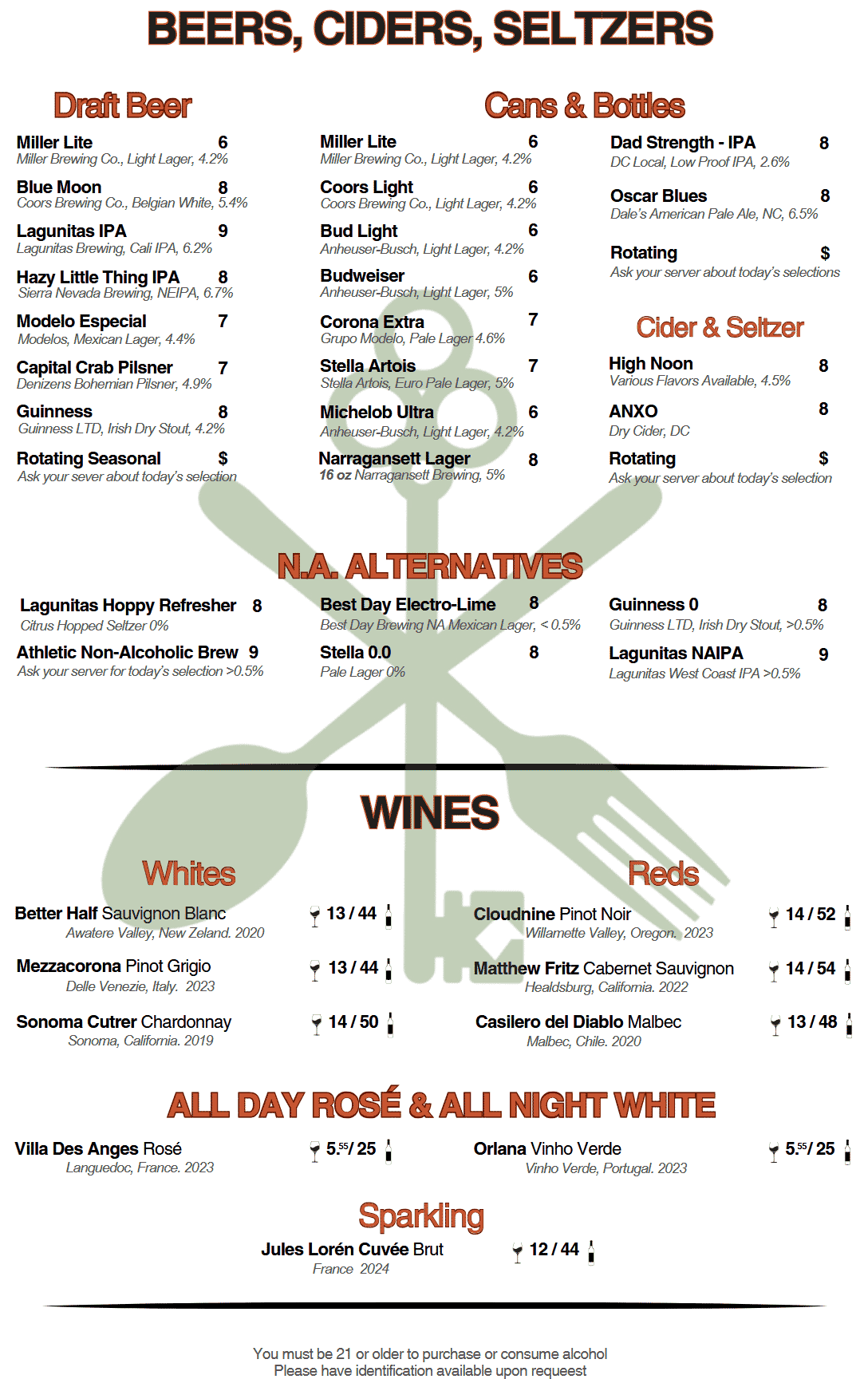 House-made, Spinach-Infused Pasta, Fines Herbs, in a Light Cream-Sauce